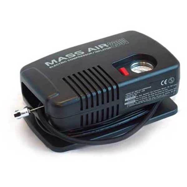 Leistungsfähiger Kompressor für den Standardeinsatz.Inklusive zweier Kunststoff- und zweier Messingaufsätze, Überlastungsschutz und Druckanzeige. 230 V